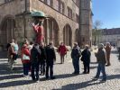 Pünktlich um 10 Uhr nahmen uns zwei Stadtführer am Nordhäuser Rathaus in Empfang und führten uns in zwei Gruppen durch die Stadt, welche neben Mühlhausen im Mittelalter den Titel einer freien Reichsstadt tragen durfte. Während des gut 2-stündigen Rundgangs, der in weiten Teilen entlang der guterhaltenen Stadtmauer führte, lernten wir die Nordhäuser Altstadt, den Dom, die St. Blasii-Kirche und den Zwinger, der ursprünglich als Rundturm zur Stadtbefestigung gehörte, kennen.